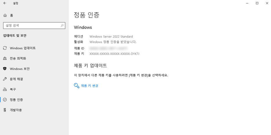 1. 먼저 준비한 CSP 라이센스로 Windows 2022 정품인증을 하였습니다.