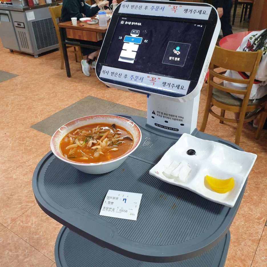 드디어 제 짬뽕을 써빙로봇이 가져왔습니다.