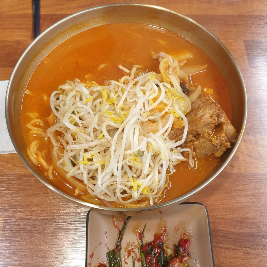 여긴 특이하게 뼈짬뽕에 숙주를 집어넣네요(왼쪽), 그런데 저도 뼈짬뽕이 되었습니다. 담당자께서, 혼자 뼈먹기 미안하다고 2개 나온뼈를 저를 하나 주시네요..ㅎㅎ