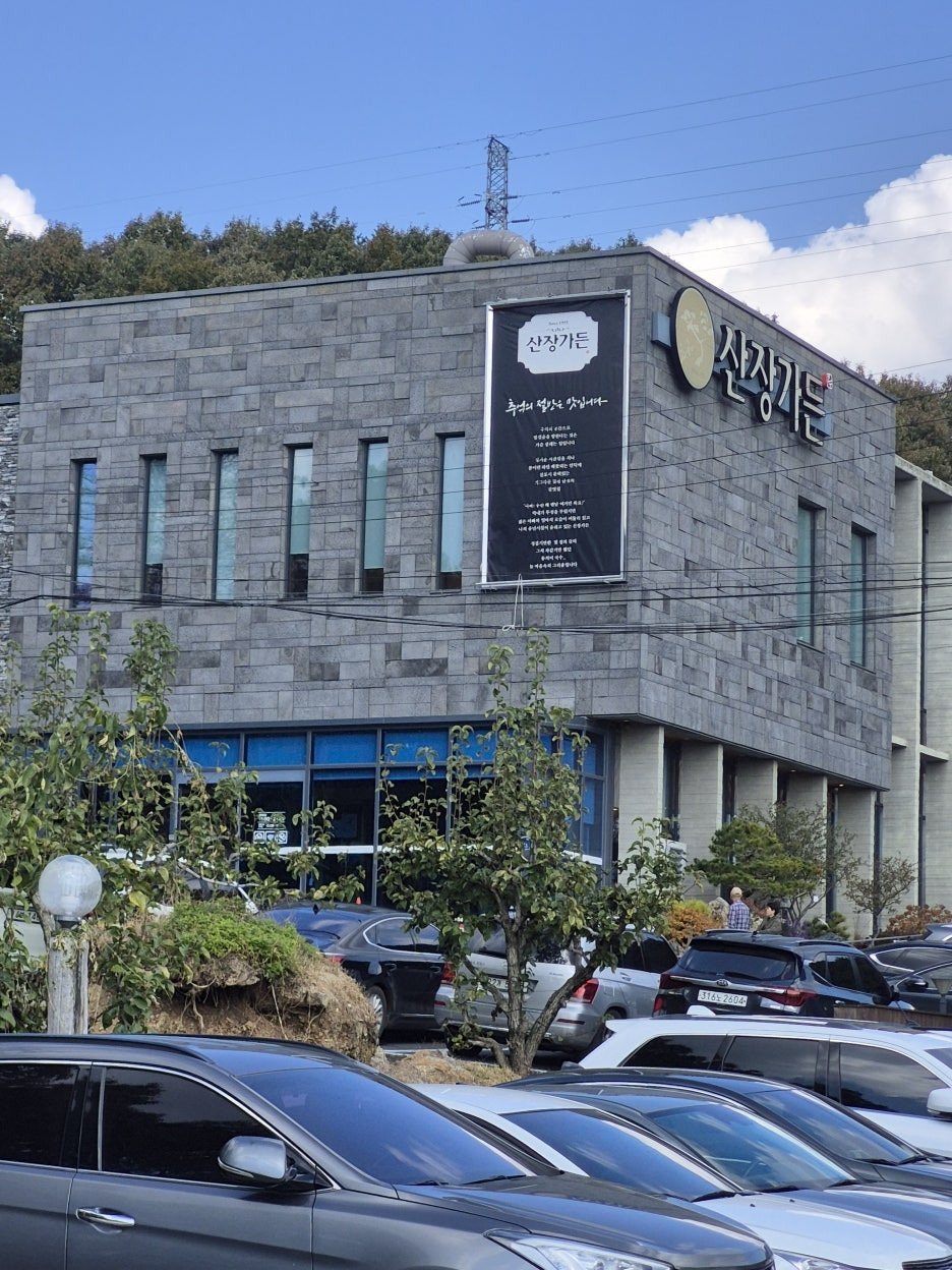 산장가든 정면 별도의 주차장도 있는데, 정말 차가 너무 많습니다..ㅎㅎ 다른뜻으로 먹을만은 할것 같다는 안심이 드네요..ㅎㅎ