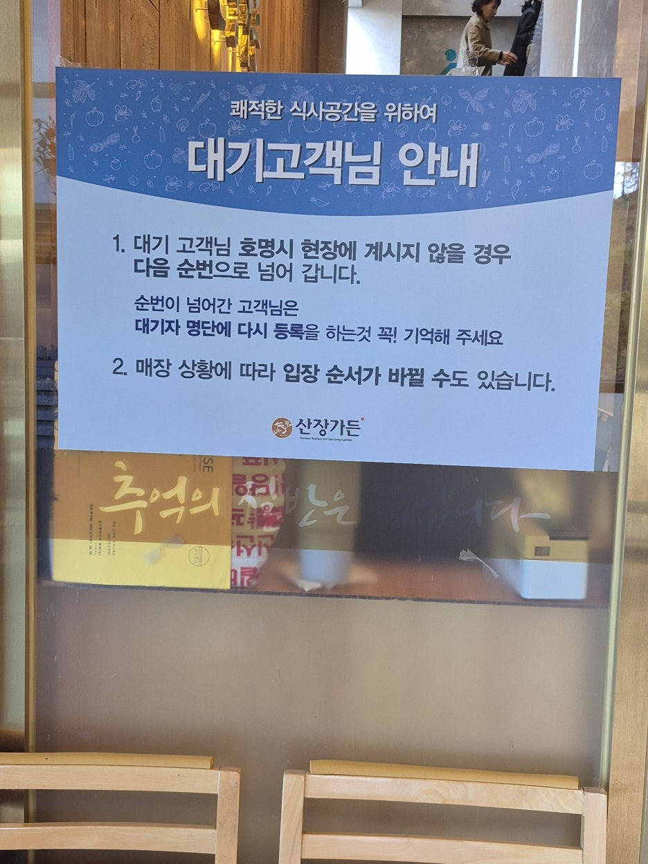 산장가든 영업시간 건물입구에는 대기공간도 이쁘고 깔끔하게 되어있습니다.