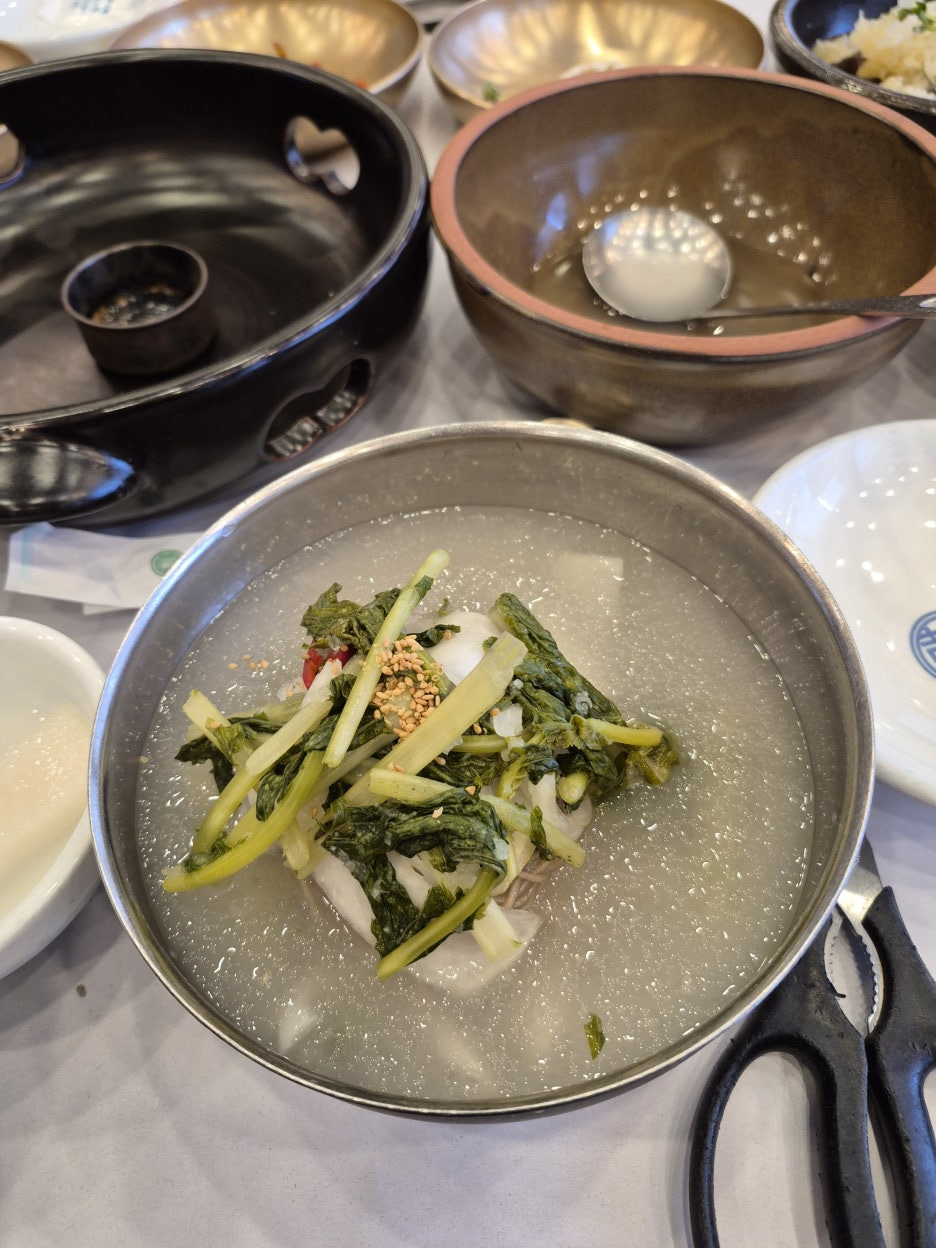 셀프바 저희가 시킨 메뉴입니다. 원조갈비, 매운갈비, 동치미국수~~ 산장가든에서는 고기들이 모두 구워져서 나옵니다. 구운고기를 안먹는건 물론이고, 고기 굽는 냄새 자체가 암발생과 재발을 촉진할수 있다고 해서.... 그렇지만 아들은 고기를 좋아하고.. 그래서 찾아낸 석갈비 맛집 산장가든입니다. 저는 동치미국수로~~~, 그래도 아들 면회를 핑계로 국수를 간만에 먹었네요..ㅎㅎ