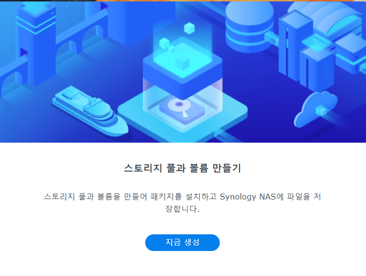 시놀로지는, 맨처음 캐쉬 및 하드디스크를 조립후, DSM 설치가 끝나면, 레이드 설정을 하게 됩니다.. SHR 이나 Raid5를 주로 쓰게되는데, Raid6를 쓰시는 분들도 있는듯 합니다. 저는 서버를 오래하다보니, 전통적인 Raid5에 스페어 디스크를 하나 두는형식으로 설정합니다. 여기에 예제를 둔 장비는 시놀로지 RS2423RP+ 인데 DSM 설치는 모든장비가 동일합니다.