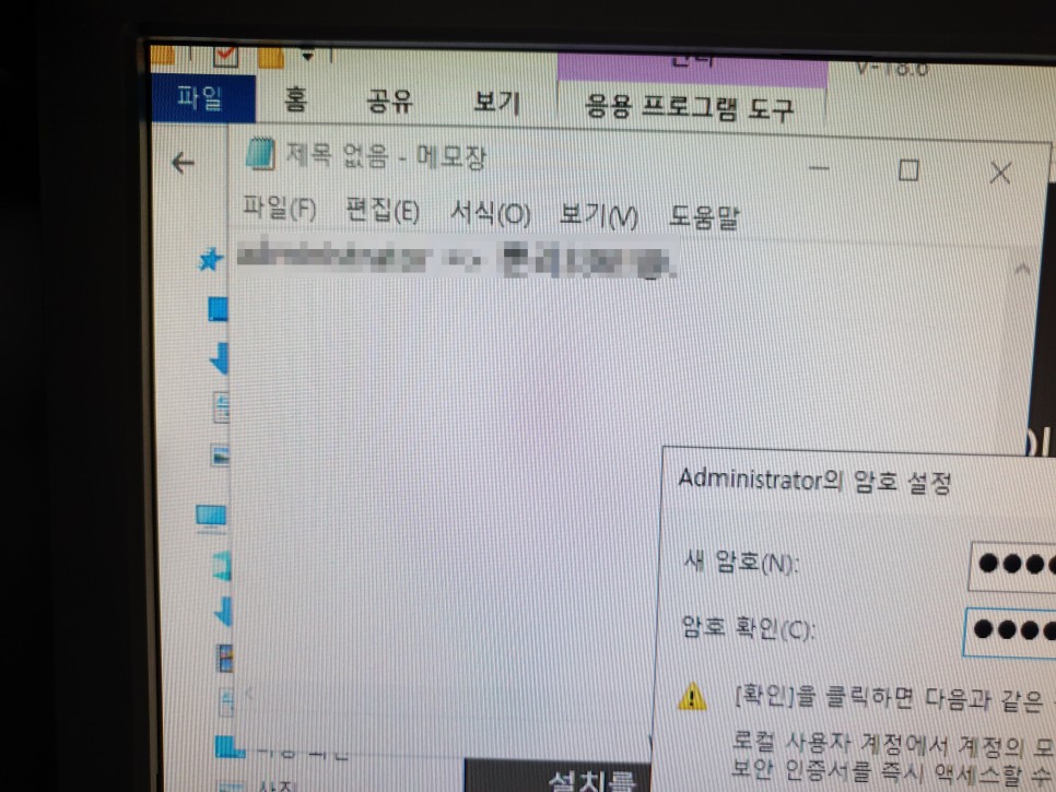 4. Windows 설치후, 패스워드 설정화면입니다.