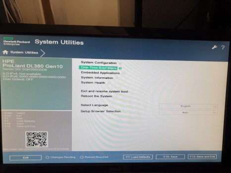 5.OS 설치를 위해 서버를 부팅하고, 화면처럼 나오면 F9를 눌러서 System Utilities로 들어갑니다