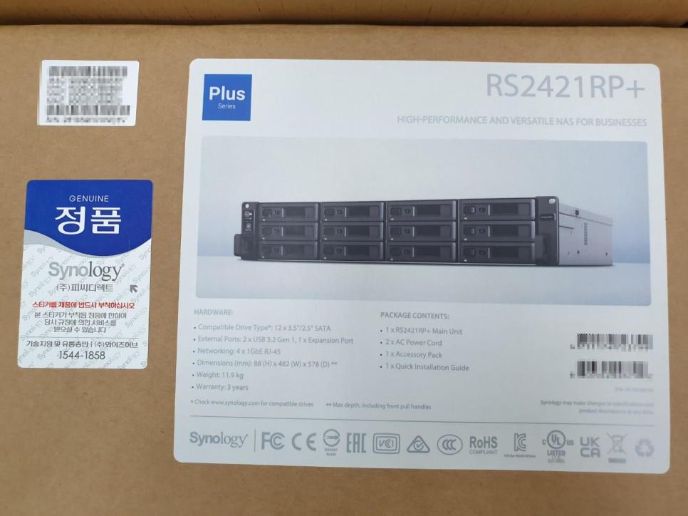 Synology(시놀로지) 설치 스펙1.모델 : Synology RS2421RP+2.CPU : AMD Ryzen V1500B / 4-core 2.2GHz3.DISK : HAT5310-8T * 54.Rail Kit RKS-02 * 15. 2년 워런티 연장6. SNV3510-400G(M.2 NVMe SSD SNV3000 Series) * 27. M2D20 Dual-slot M.2 SSD adapter card for cache acceleration * 1ATEN KVM 설치 스펙