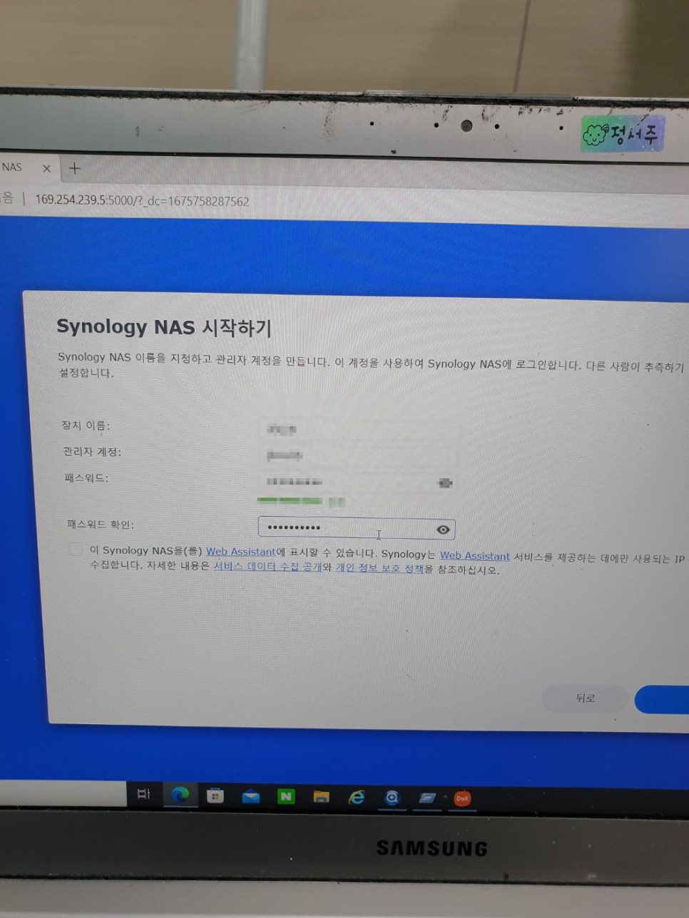 4. DSM 7x 버전을 설치 완료하고, 패스워드를 입력합니다.